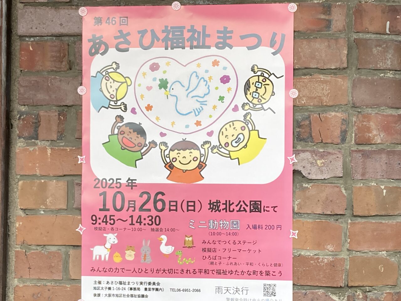 【大阪市旭区】10月26日(日)城北公園で「第46回あさひ福祉まつり」が開催です!ミニ動物園やフリーマーケットもあるようです!