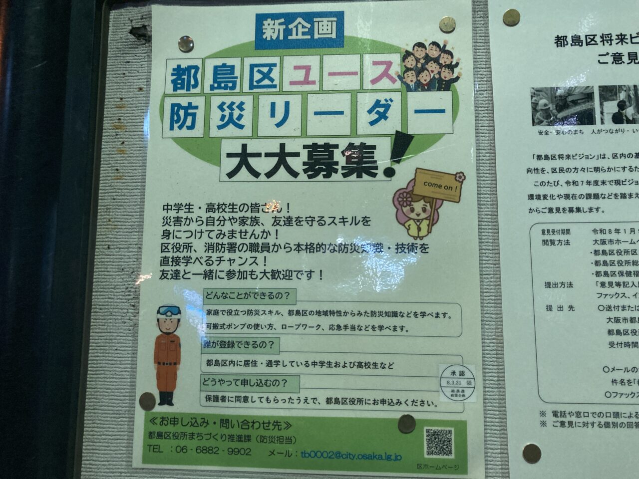【大阪市都島区】1月17日は「防災とボランティアの日」。中学生、高校生の皆さん、都島区ユース防災リーダーが募集中です。