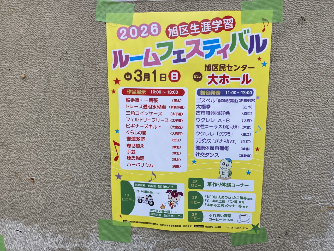 【大阪市旭区】入場無料!3月1日(日)旭区民センターで「旭区生涯学習ルームフェスティバル」が開催!