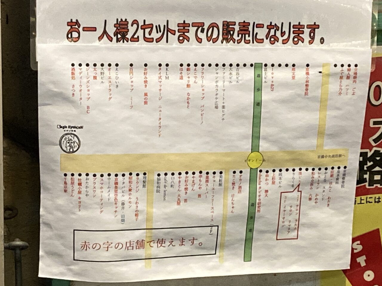 午前10時から、ドーム下で販売。新京橋商店街加盟店でのみ使える6,000円分の商品券が5,000円で販売との事です。(100セット販売)