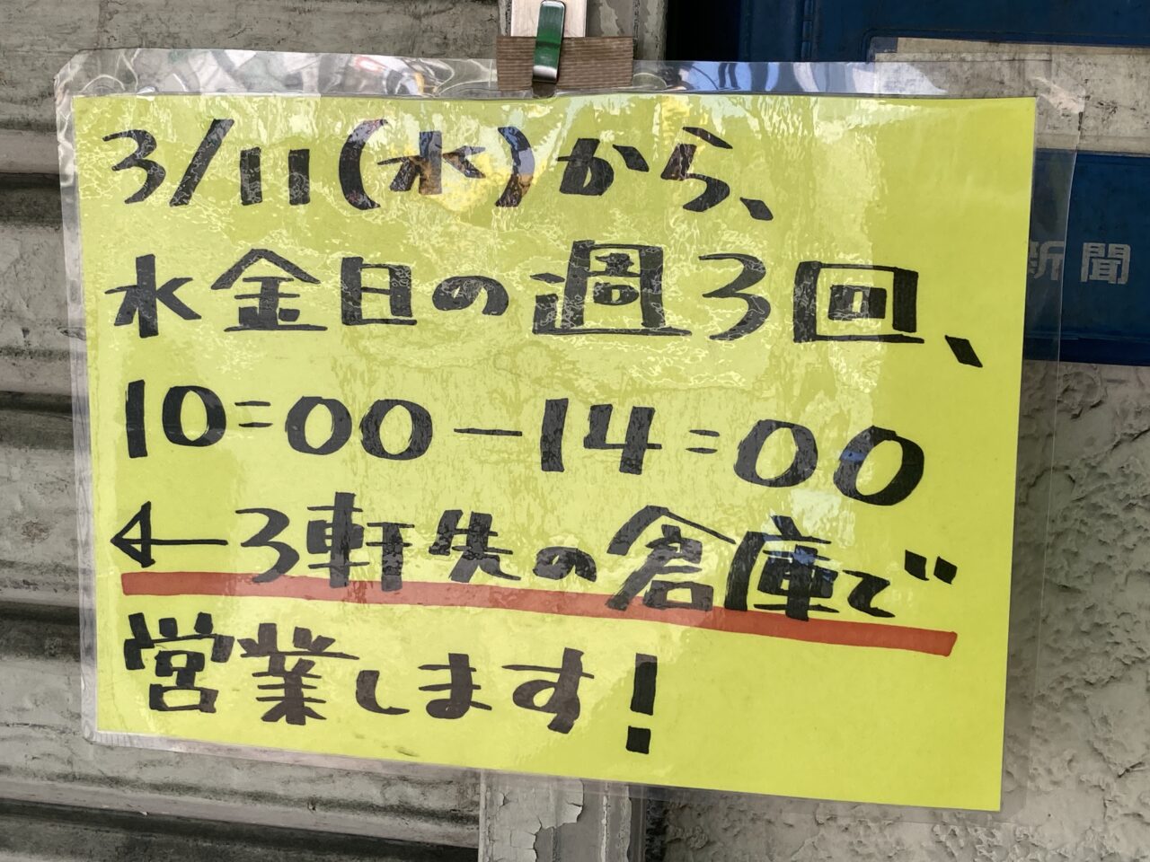 新しいお店ができるのは楽しみですね。ここは以前は、営業日は少ないですが人気の果物屋さんがあって、近頃は金曜日と日曜日だけの営業でした。場所を移動して、水曜日、金曜日、日曜日の10時から14時までオープンされているようです。